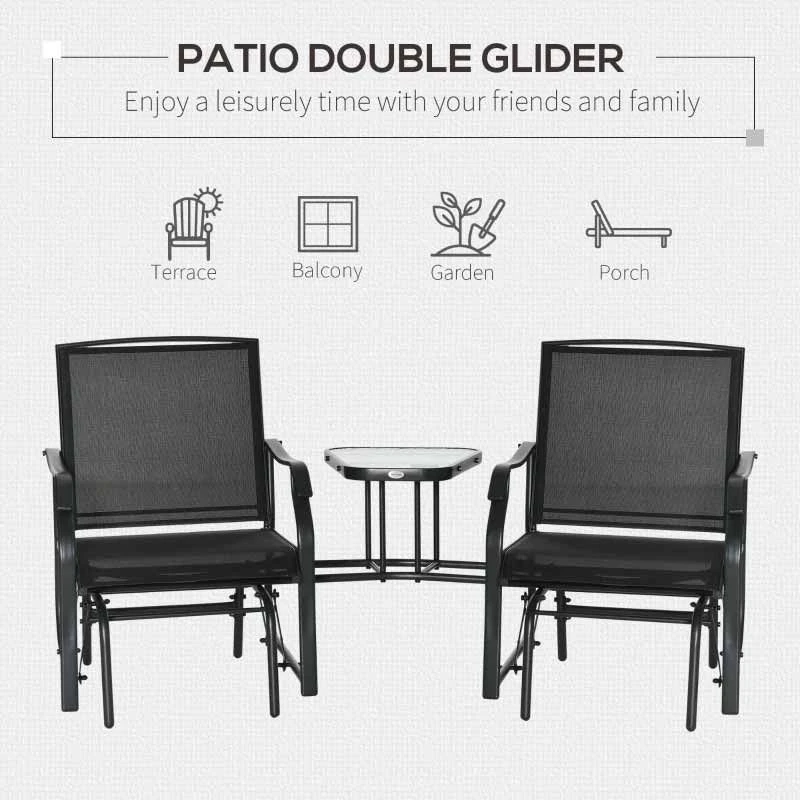 Outsunny Double Garden Rocking Chairs-Black-84A-084BK