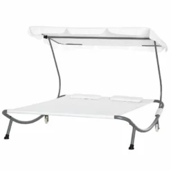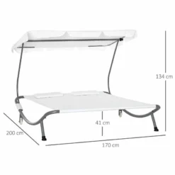 Outsunny Double Hammock Sun Lounger with Canopy – Cream White – 84B-174CW