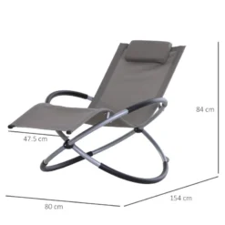 If you are looking for a modern piece of furniture to compliment your outdoor living space, this Outsunny rocking garden chair is the one for you. The orbital base will gently glide you back and forth, ensuring maximum relaxation for hours on end. Constructed from a strong metal frame, this garden chair is durable and will withstand the elements. Covered in a texeline material, it will drain water and is easily cleaned with a damp cloth. The deep seat, high back, curved arm rests and added head rest pillow will keep you supported and comfortable all day long. This garden chair is lightweight and foldable so can we easily moved around you garden to the ideal spot for you to sit back and relax or stored away in a compact space..