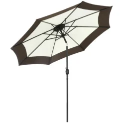 Outsunny 2.7m Parasol with 8 Metal Ribs and Crank – Coffee – 84D-240V00CF