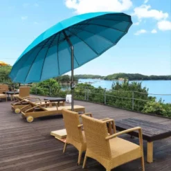 Outsunny garden Parasol with 18 Sturdy Ribs & Push Button Tilt Crank – Blue – 84D-103BU