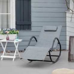 If you are looking for a modern piece of furniture to finish off your outdoor living space, this Outsunny reclining rocker garden chair is the one for you. The added head rest pillow and wave seat design perfectly contours your body keeping you supported and comfortable all day long. Constructed from strong powder coated steel frame, this garden chair is durable, protected from the elements and will last for years to come. Completely covered in a texeline sling fabric it drains water and is easily cleaned with a damp cloth.