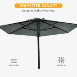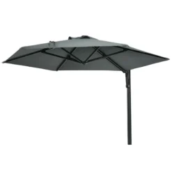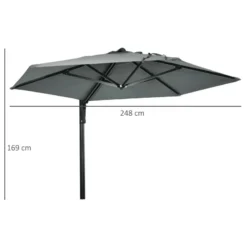 Outsunny Hand to Push Wall Mounted Parasol with 180 Degree Rotatable Canopy – Grey – 84D-210V00GY