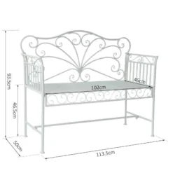 This Outsunny garden bench is the perfect the addition for your outside living space all year-round. This bench is constructed from a durable metal, finished with a white powder coating for protection against rusting and peeling. Slatted all over, offering comfort and provides drainage for water build up that reduces the risk of damage. The generous two-seater bench has plenty of space for you and a friend to relax in the comfort of your own garden