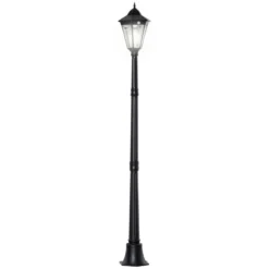 Outsunny Garden Lamp Post’s Victorian streetlight-inspired design will keep your outdoor space automatically lit up as it gets dark. With the help of two LED lights, a large light casing is equipped to emit a white glow. The solar-powered design is charged during the day and illuminated at night. The frame is weather-resistant by nature, secure for use throughout the year, and made from strong powder-coated aluminium for further strength and endurance. For securing the ground, screws are provided.