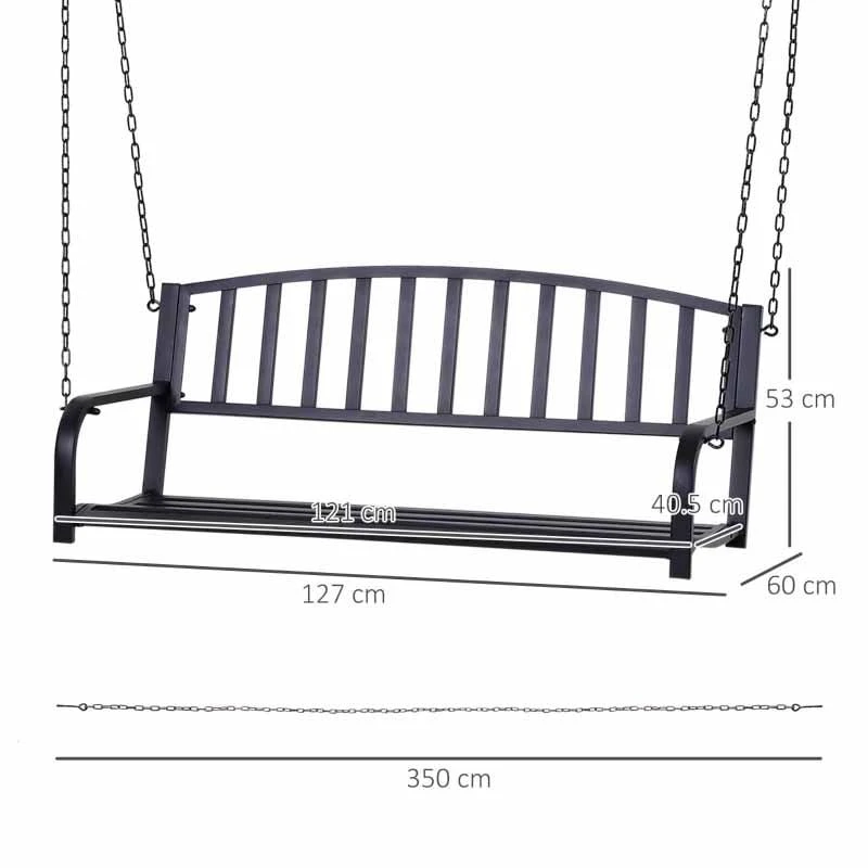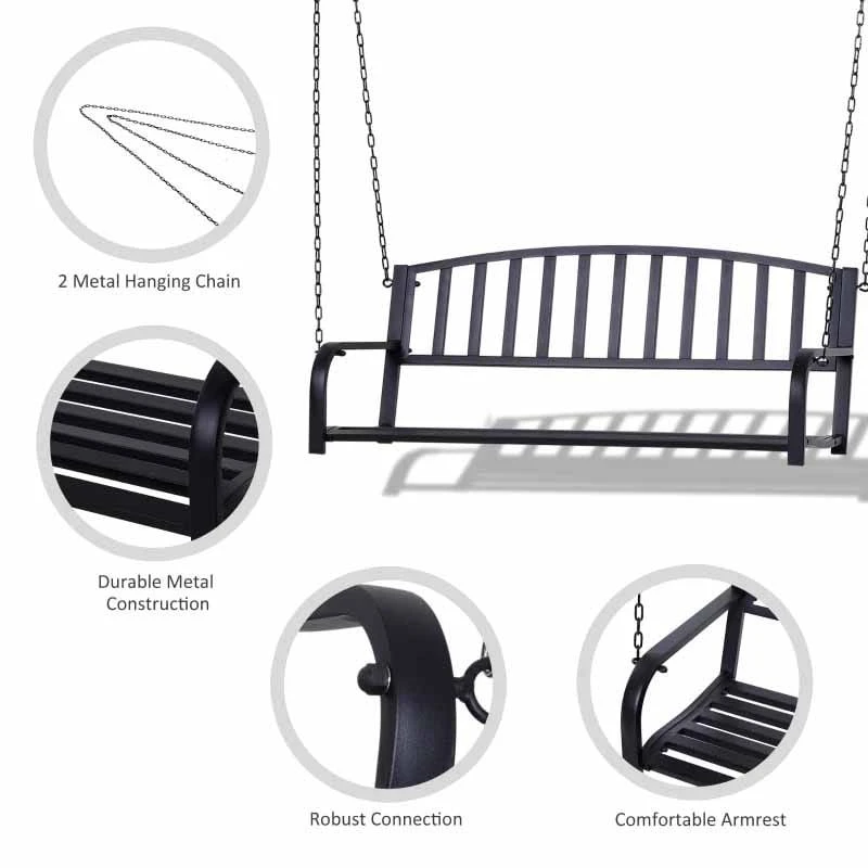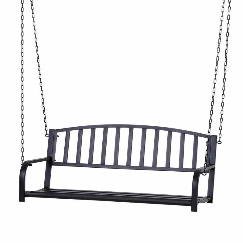 Simple yet elegant, this Outsunny Metal Swing Chair will add a stylish update to your outdoor area. Slatted on the seat to prevent water build-up and on the back to circulate air around when hot. Two long chains on both sides allow you to swing this seat securely and safely from a higher platform. The weather-resistant topcoat help protect it from the elements and prolong its lifespan for years of use.