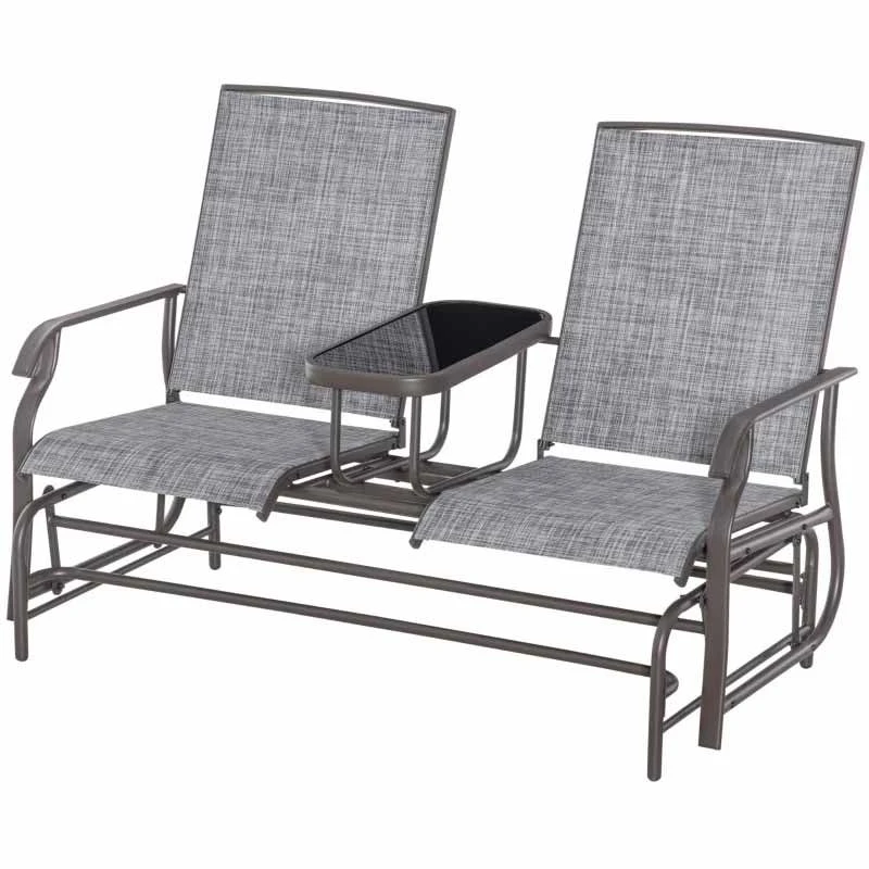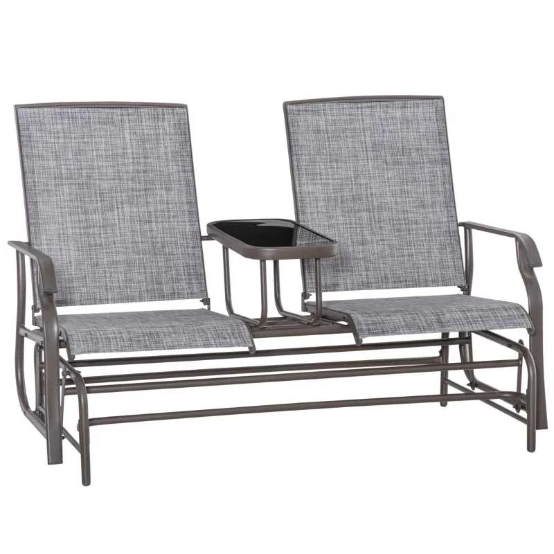 Outsunny Metal Double Garden Swing Chair W/Table-Grey-84A-011V01