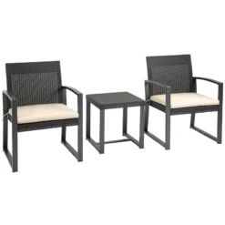 Outsunny’s amazing garden set comes with a matching coffee table and two armchairs. Unlike the traditional option, this bistro set is constructed from durable plastic, making it tougher, and is designed for outdoor gardens in a rattan-effect style. This rattan bistro set comes with soft, padded cushions for comfort. The covers have zippers, which can be removed and washed easily.