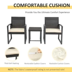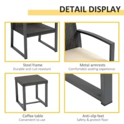 Outsunny PP Rattan Style Bistro Set with Cushion – Brown – 84B-955BN