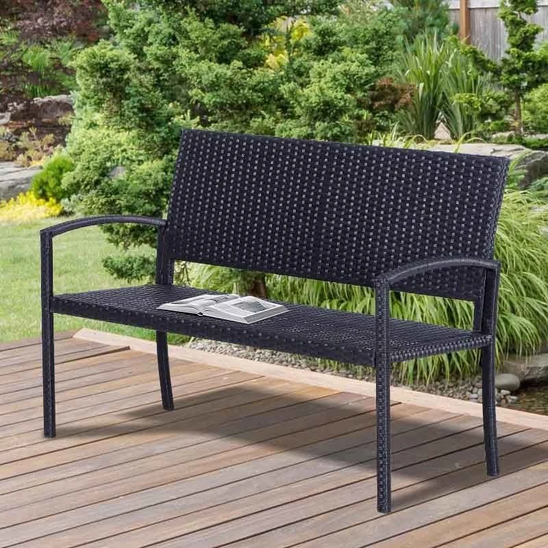 Bring this simple but stylish Outsunny garden bench to your outdoor living space. This bench has a two layer design: a metal frame wrapped with PE wicker for extra durability and protection. The high back, curved arm rests and deep seat are perfect for you and a friend to relax with ample of space in the comfort of your own garden.