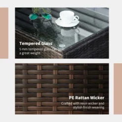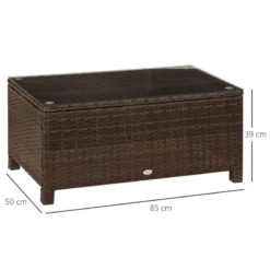 Outsunny Rattan Coffee Table with Glass Table Top – 850mm – Brown – 01-0721