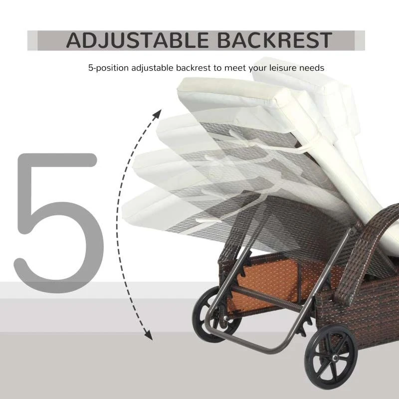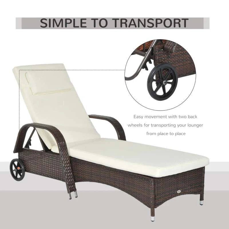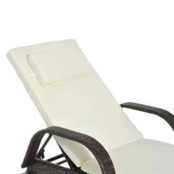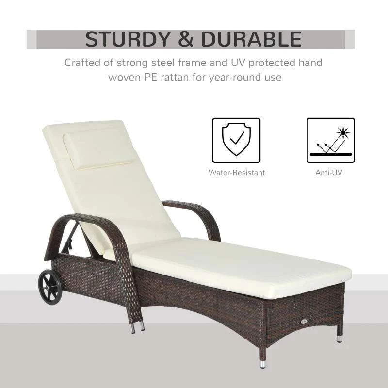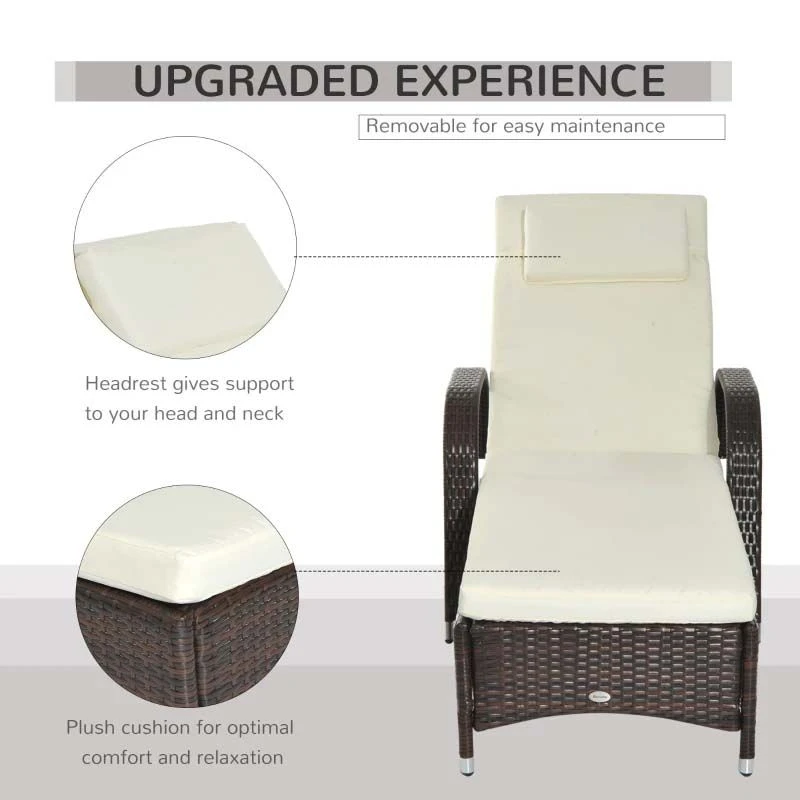 Outsunny Rattan Reclining Sun Lounger – Brown/Cream – 862-005V01BN