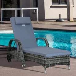 Outsunny Rattan Reclining Sun Lounger – Grey – 862-005V01GY