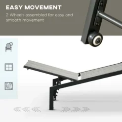 - Two wheels to move around easily, with anti-slip protectors on front legs