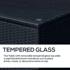 Outsunny Rattan Side Table with Glass Table Top – 640mm – Black – 01-0724