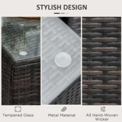 Outsunny Rattan Side Table with Glass Table Top – 640mm – Brown – 01-0723