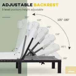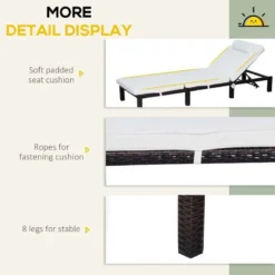 Outsunny Reclining Rattan Sun Lounger With Pillow – Cream – 01-0785