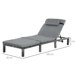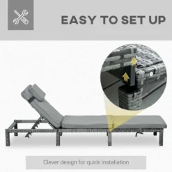 Outsunny Reclining Rattan Sun Lounger With Pillow – Grey – 841-004V70GY