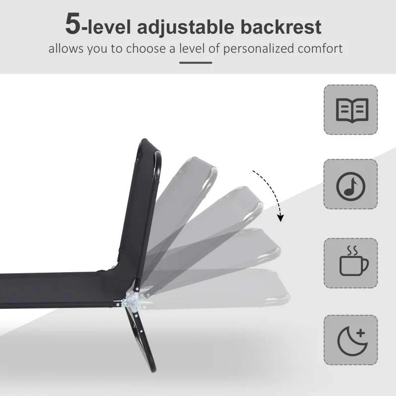 Outsunny Reclining Sun Lounger – Black – 84B-442BK