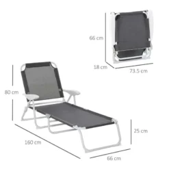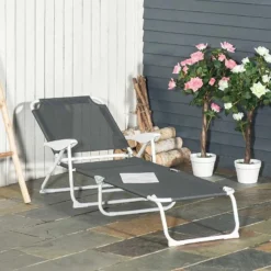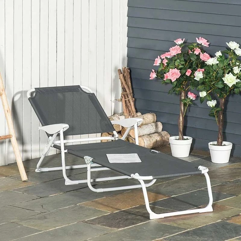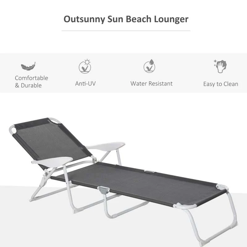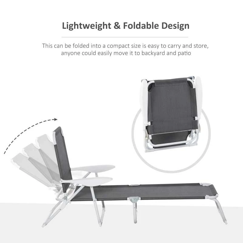 Outsunny Reclining Sun Lounger – Grey – 84B-438CG