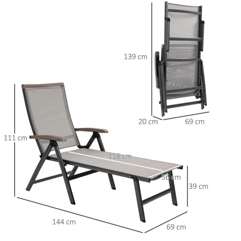 Outsunny Reclining Sun Lounger – Grey – 84B-792