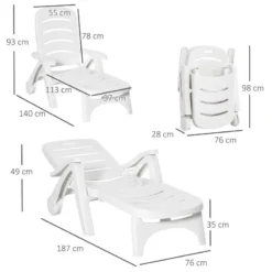 Outsunny Reclining Sun Lounger – White – 84B-687