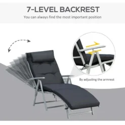 Outsunny Reclining Sun Lounger With Cushion – Black – 84B-184V70BK