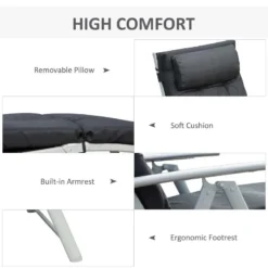 Check out this stunning Outsunny garden sun lounger that we can be sure will compliment your outdoor living space perfectly. Constructed from a metal frame and arm rests, this lounger is strong, durable and will last for years to come. The thick cushions, reclining back and footrest, will keep you supported and completely comfortable for hours on end. The cushion is attached with ties and can be removed to reveal a mesh sling fabric underneath that circulates air to keep on cool on warm summer days. The folding design allows you to manoeuvre the sun lounger to your preferred position around your garden and is easily packed away when not in use. If you are looking for a beautifully designed sun lounger, this is the one for you.