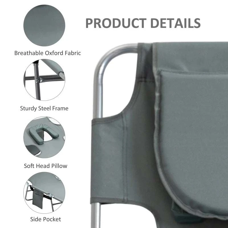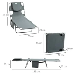 Outsunny Reclining Sun Lounger With Head Pillow – Grey – 84B-867GY