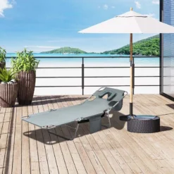 Check out this stunning Outsunny garden sun lounger that we can be sure will compliment your outdoor living space perfectly. Constructed from a powder coated metal frame this lounger is strong, durable and will last for years to come. Covered in a sling fabric that circulates air keeping you cool on warm summer days and can be easily cleaned with a damp cloth. The added face pillow will support you whilst sunbathing on your front or flip over the cushion to close the hole. Sit back whilst reading or use the reclining back rest function to lay completely flat. The handy side pocket is ideal for keeping your phone or book secure and accessible. This sun lounger is lightweight so can be easily manoeuvred to your preferred position of your garden and can be compactly stored away when not in use. If you are looking for a simple but stylish sun lounger, look no further this is the one for you.
