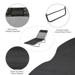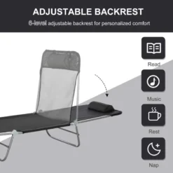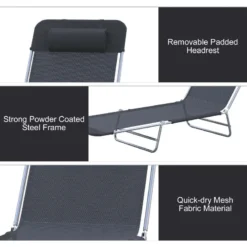Outsunny Reclining Sun Lounger With Pillow – Black – 01-0336