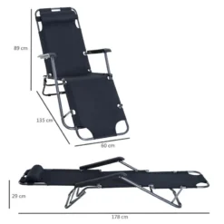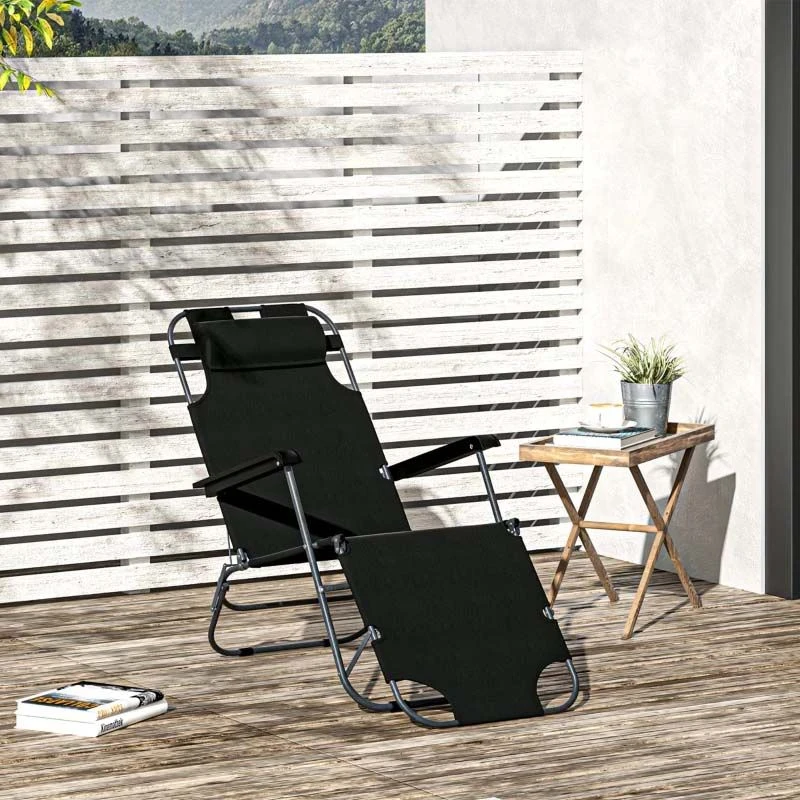 Outsunny Reclining Sun Lounger With Pillow – Black – 84B-043BK