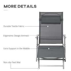 Outsunny Reclining Sun Lounger With Pillow – Grey – 84B-184V02CG