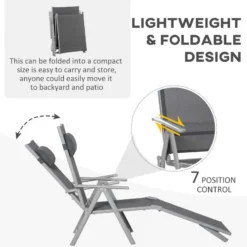Check out this stunning Outsunny garden sun lounger that we can be sure will compliment your outdoor living space perfectly. Constructed from a powder coated metal frame and curved arm rests, this sun lounger is strong, durable and will last for years to come. Covered in washable PCV sling fabric that allows air to circulate and keeps you cool on warm summer days, it is also easily cleaned with a damp cloth. Sit up to read a book or recline the back and footrest to convert into a lounger for sunbathing in the comfort of your own garden, the added head rest pillow will keep you supported and comfortable for hours on end. This sun lounger is also lightweight which allows you to easily manoeuvre to your preferred position of your garden and can be folded for easy storage when not in use. If you are looking for a beautifully designed sun lounger, this is the one for you.
