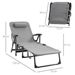 Outsunny Reclining Sun Lounger With Pillow – Grey – 84B-770V70LG