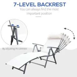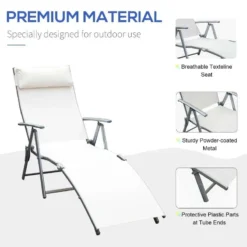 Outsunny Reclining Sun Lounger With Pillow – White – 84B-184CW