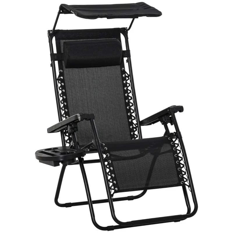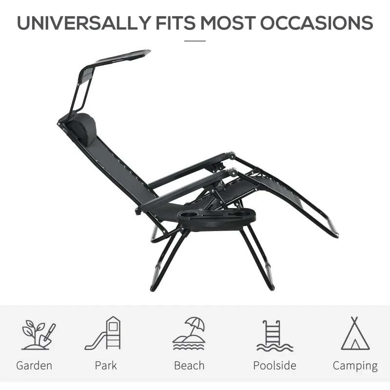 Check out this stunning Outsunny garden sun lounger that we can be sure will compliment your outdoor living space perfectly. Constructed from a powder coated metal frame, plastic arm rests and covered in a sling fabric, the lounger is strong, durable and will last for years to come in the weather elements. The sling fabric circulates air that keeps you cool on warm summer days and can be cleaned with a damp cloth. Sit up to read a book or use the reclining back and footrest function to lay back and relax in the comfort of your own garden for hours on end, complete with the added shade to protect your eyes from the sun and head rest pillow for ultimate support. The handy side table with holes for your drinks, book and phone is ideal for keeping your things close and secure. The folding design allows you to manoeuvre the sun lounger to your preferred position around your garden and is easily packed away when not in use. If you are looking for a beautifully designed sun lounger, this is the one for you.