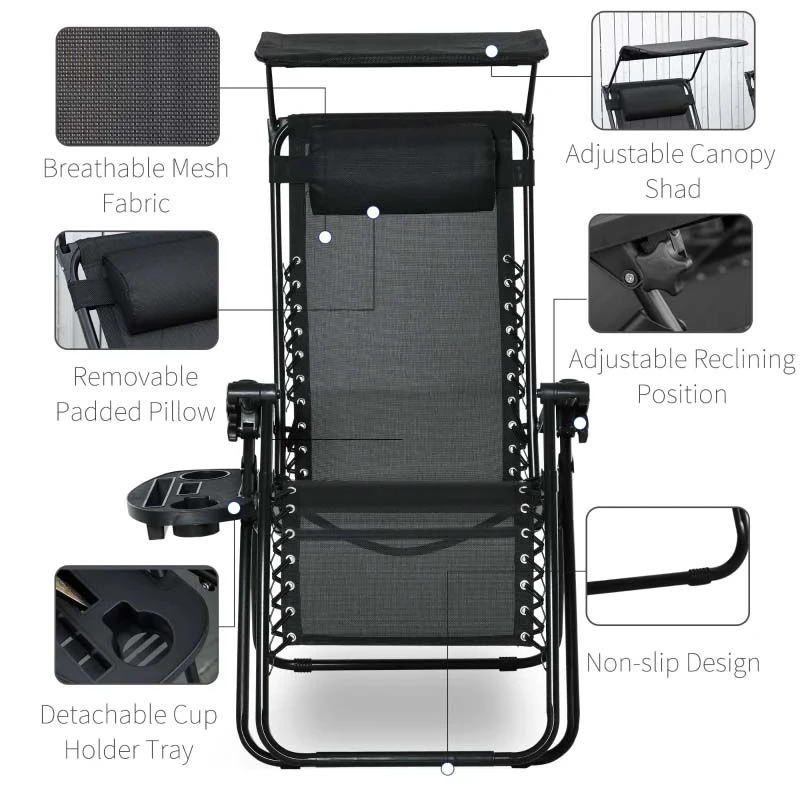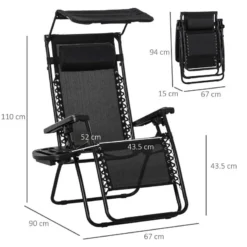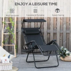 Outsunny Reclining Sun Lounger With Sun Shade – Black – 84B-388BK