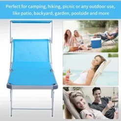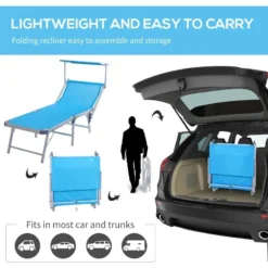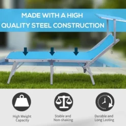 Outsunny Reclining Sun Lounger With Sun Shade – Blue – 84B-433BU