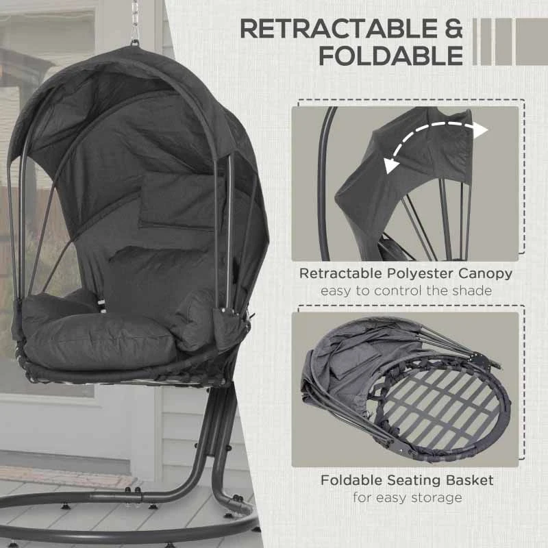 Outsunny Retractable Canopy Hanging Egg Chair with Cushion – Grey – 84A-212