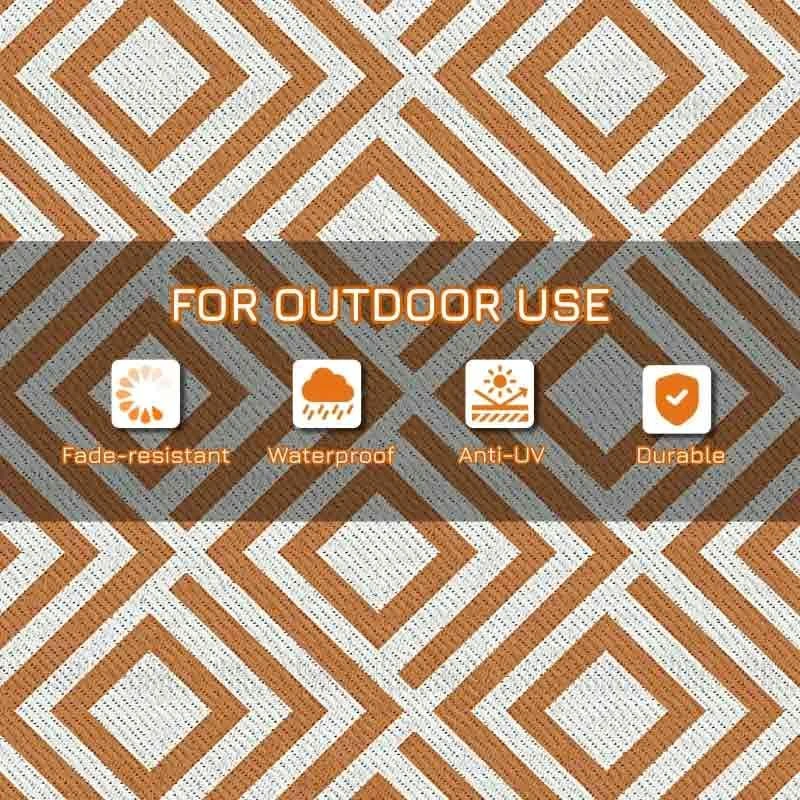 Experience the versatility of the Outsunny Waterproof Outdoor Rug for all your outdoor activities. Whether it’s camping, picnics, festivals, or simply enjoying your garden, this rug is a must-have. Its foldable design allows for easy transport and storage. Made from durable and water-resistant polypropylene, it can withstand outdoor use. The reversible feature doubles its lifespan, providing a clean side when one gets dirty. The garden rug comes with corner straps and ground nails for secure placement. It includes a convenient carry bag for safe and hassle-free traveling. Elevate your outdoor experience with this functional and stylish outdoor rug.