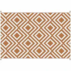 Outsunny Reversible Outdoor Rug with Carry Bag and Ground Stakes – Brown & White – 844-637V01TE