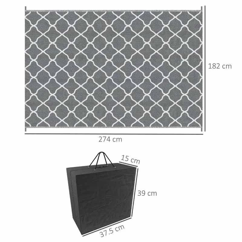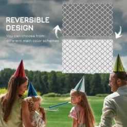 Outsunny Reversible Outdoor Rug with Carry Bag and Ground Stakes – Grey & White -844-638V01LG
