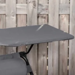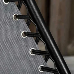 The Zero-Gravity Rocking Chair is great at comfort with its adjustable 10Β°-35Β° back angle allowing you to relax in your desired position. The chair is easy to be converted into a sooting rocker with just a flip of the bottom legs. The fabric seat with a removable padded headrest provides support for your neck and head. The canopy at the top offers shade from those UV rays on brighter days. The powder-coated steel frame makes it tough to withstand most weather conditions. A handy tray on the side holds your drinks, phone, or books and it is also removable in case you don’t need it. A double bungee support system with a safe load-bearing triangle provides stability. The chair’s compact design makes it easy to store or carry.