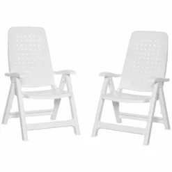 Outsunny Set of 2 4-Position Backrest Folding Chairs – White – 84B-715