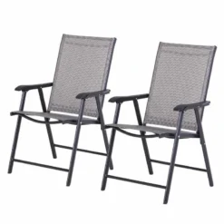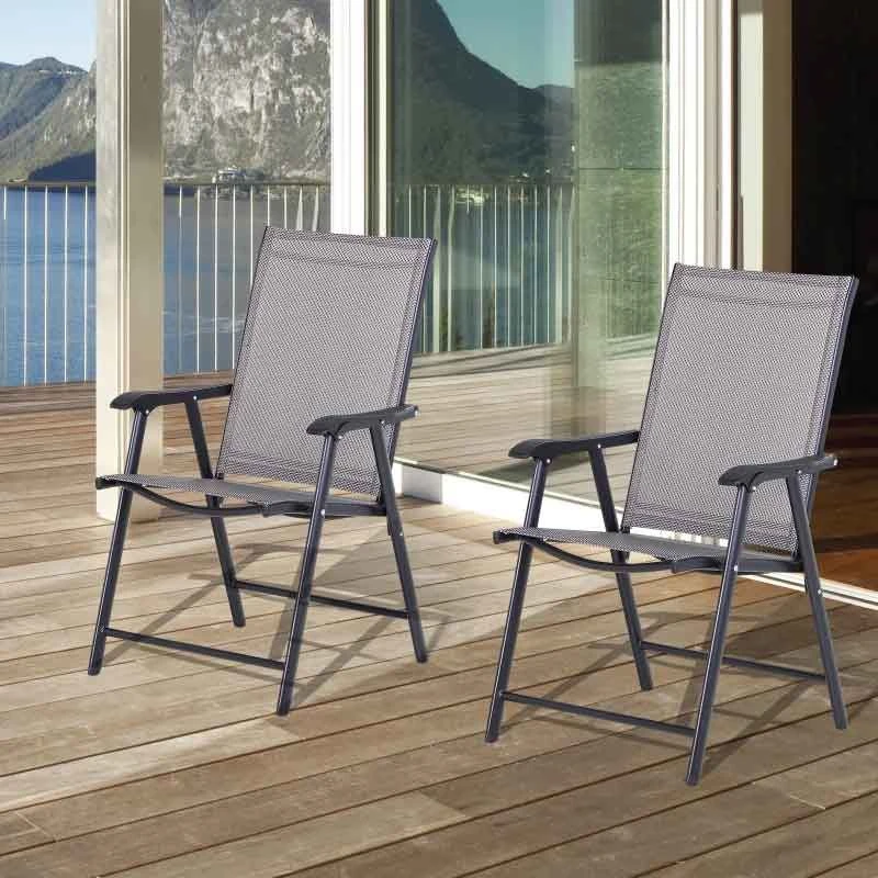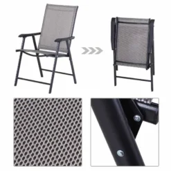 Outsunny Set of 2 Foldable Metal Garden Chairs – Grey – 84B-381GY
