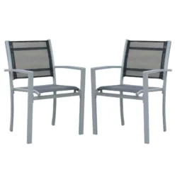 Outsunny Set Of 2 Metal Outdoor Garden Chairs – Grey – 84B-293