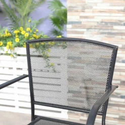 The Outsunny Set of 2 Metal Garden Chairs is a classic choice for your outdoors. With spacious seats, paired with graduating back and armrest, the chairs provide lots of sitting room and plenty of support. Powder-coated metal offer strength and durability. The mesh grid help to prevent water build-up. Get this set of 2 Outsunny Metal Chairs and relax on brighter days with your partner.