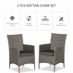 Outsunny Set of 2 Rattan Armchairs – Grey – 861-004GY