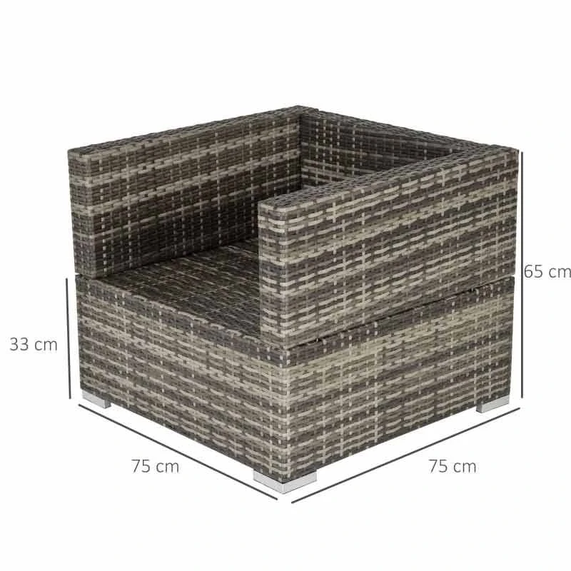 Outsunny Single Wicker Sofa Armchair – Deep Grey – 860-141V70CG